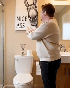 Stop taking life so seriously, even in the bathroom. This hilarious donkey print breaks the ice instantly, guaranteeing a chuckle or a full belly laugh from anyone who sees it.